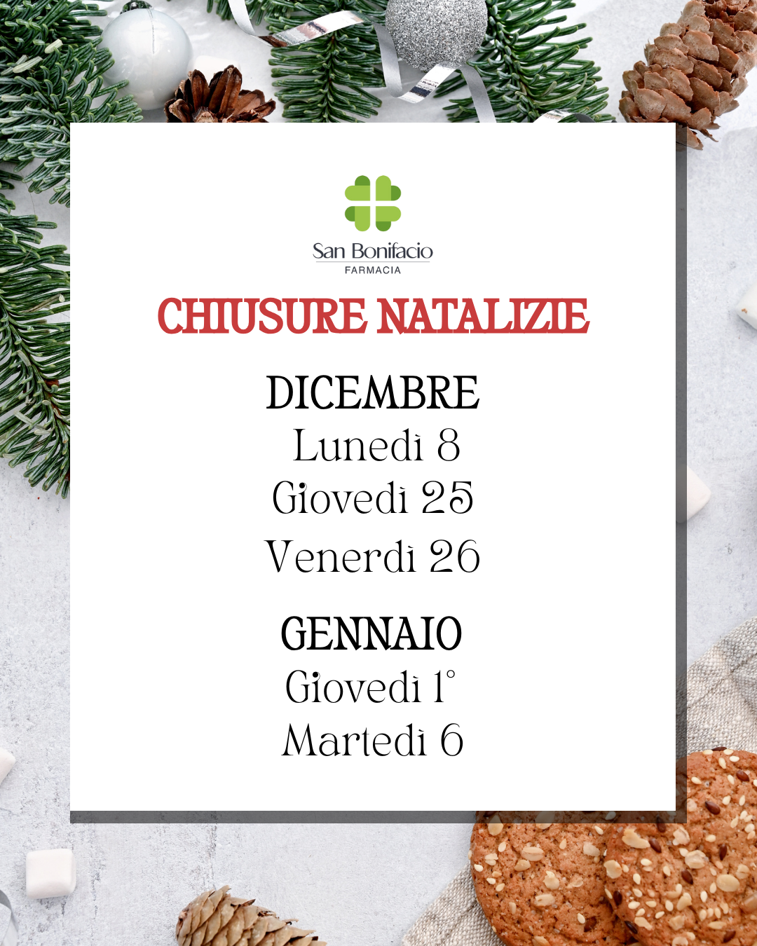 Mese di dicembre 📆Lunedì 8 📆Giovedì 25 📆Venerdì 26